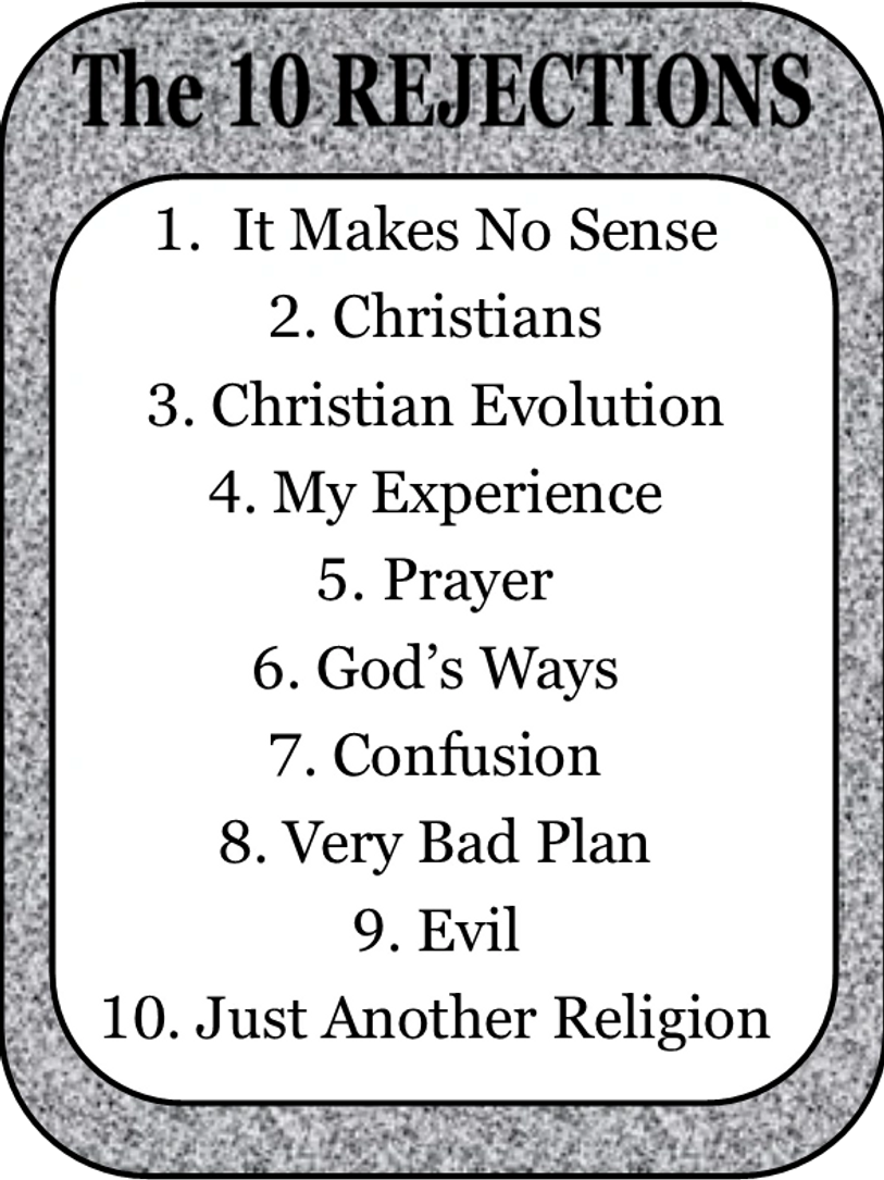 When one is able to objectively examine any religion with an open mind, the above conclusion is reached. That's my belief. I spent 15 years as a fervent and devout born-again Christian. After a difficult, 2-year process of questioning and examining, I left the faith. I've come up with 10 reasons why, which I call the 10 REJECTIONS.